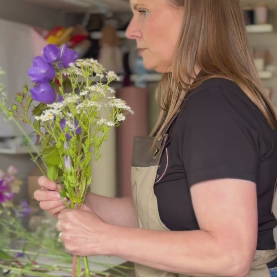 In the colder months (or when the field takes a rest), we mix our own with beautiful market blooms, still arranged in our signature wild and natural style.