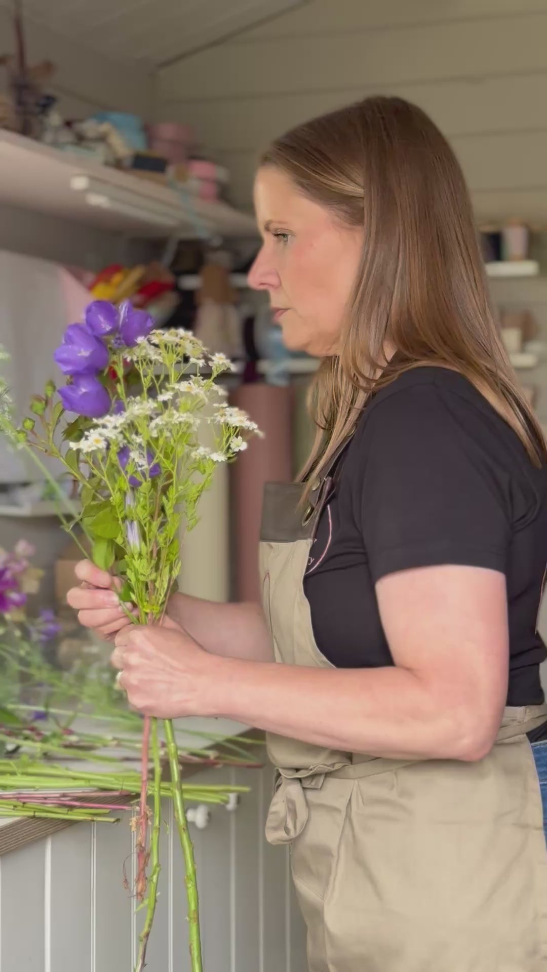 In the summer, we use our own British-grown flowers from the field here in Burscough — freshly cut and arranged the same day.